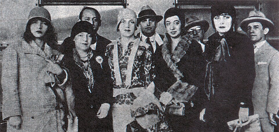 Da esquerda para a direita: Pagu, Anita Malfatti, Tarsila do Amaral, Oswald de Andrade, Elsie Houston, Benjamin Péret e Eugênia Álvaro Moreyra. Rio de Janeiro, em 1929.