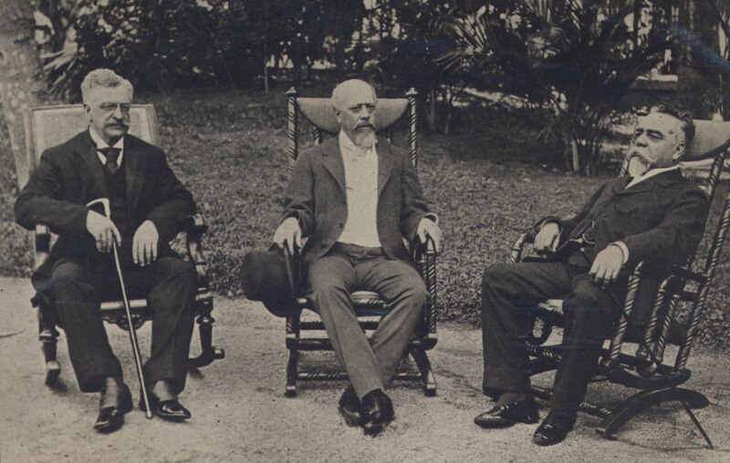 Campos Sales, Julio Roca e o Barão do Rio Branco em viagem à Petrópolis, 1907.
