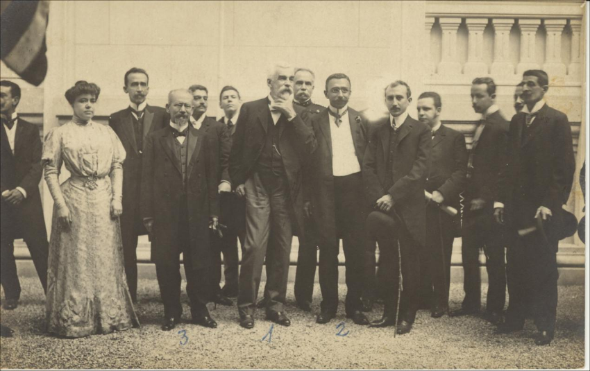 Pereira Passos e Rodrigues Alves entre grupo de pessoas